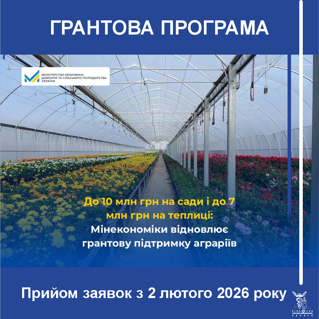 З 2 лютого Міністерство економіки, довкілля та сільського господарства України відновлює прийом заяв на отримання державної допомоги у формі грантів для розвитку садівництва, ягідництва, виноградарства та тепличного господарства.