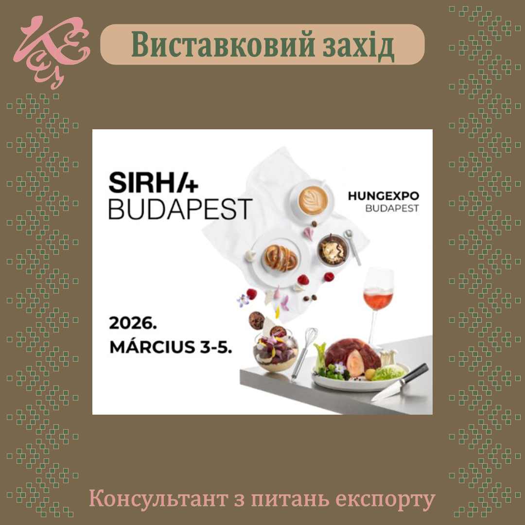 Виставковий захід SIRHA Budapest 2026, 03-05 березня