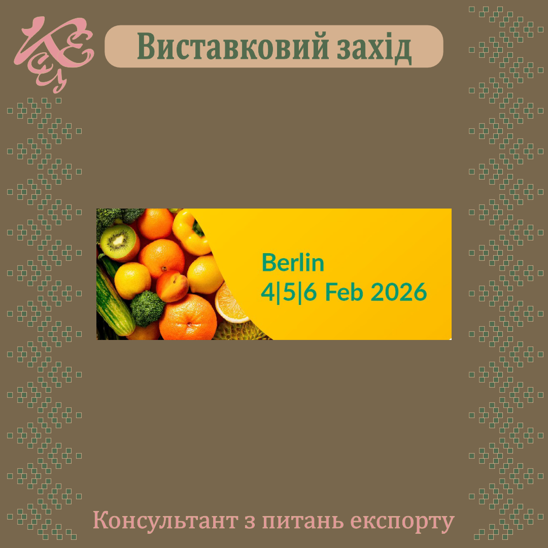 Виставковий захід FRUIT LOGISTICA 2026, 04-06 лютого 2026