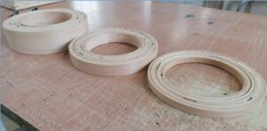 Технологія, що використовується для виготовлення цих кіл, включає лущення деревини та її кондиціонування для згинання.