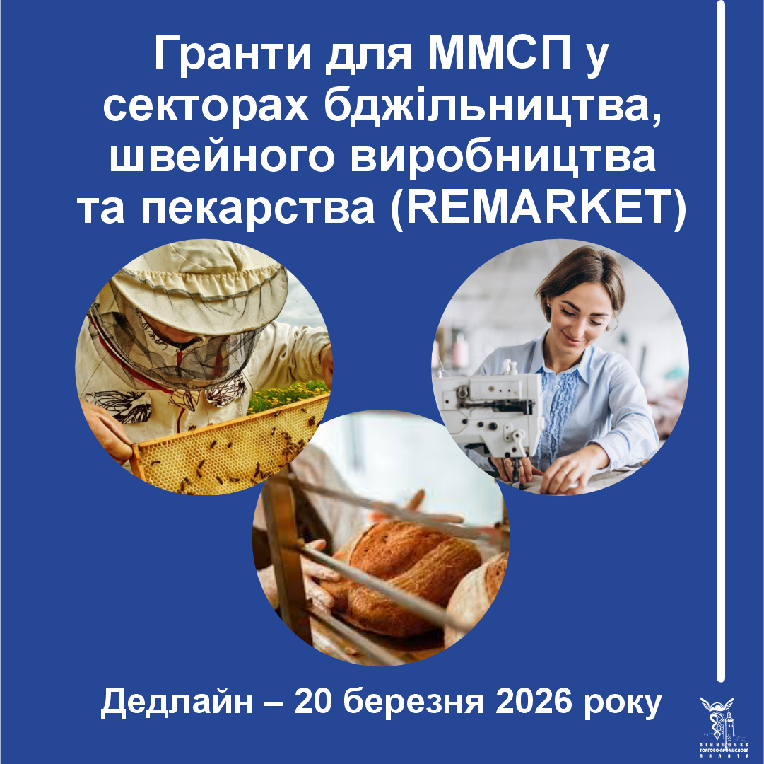Проєкт REMARKET оголосив грант на підтримку мікро-, малих та середніх підприємств, що працюють у секторах бджільництва, швейного виробництва та пекарства. Проєкт спрямований на підтримку сталого розвитку бізнесів і сприяння економічному відновленню в Україні.