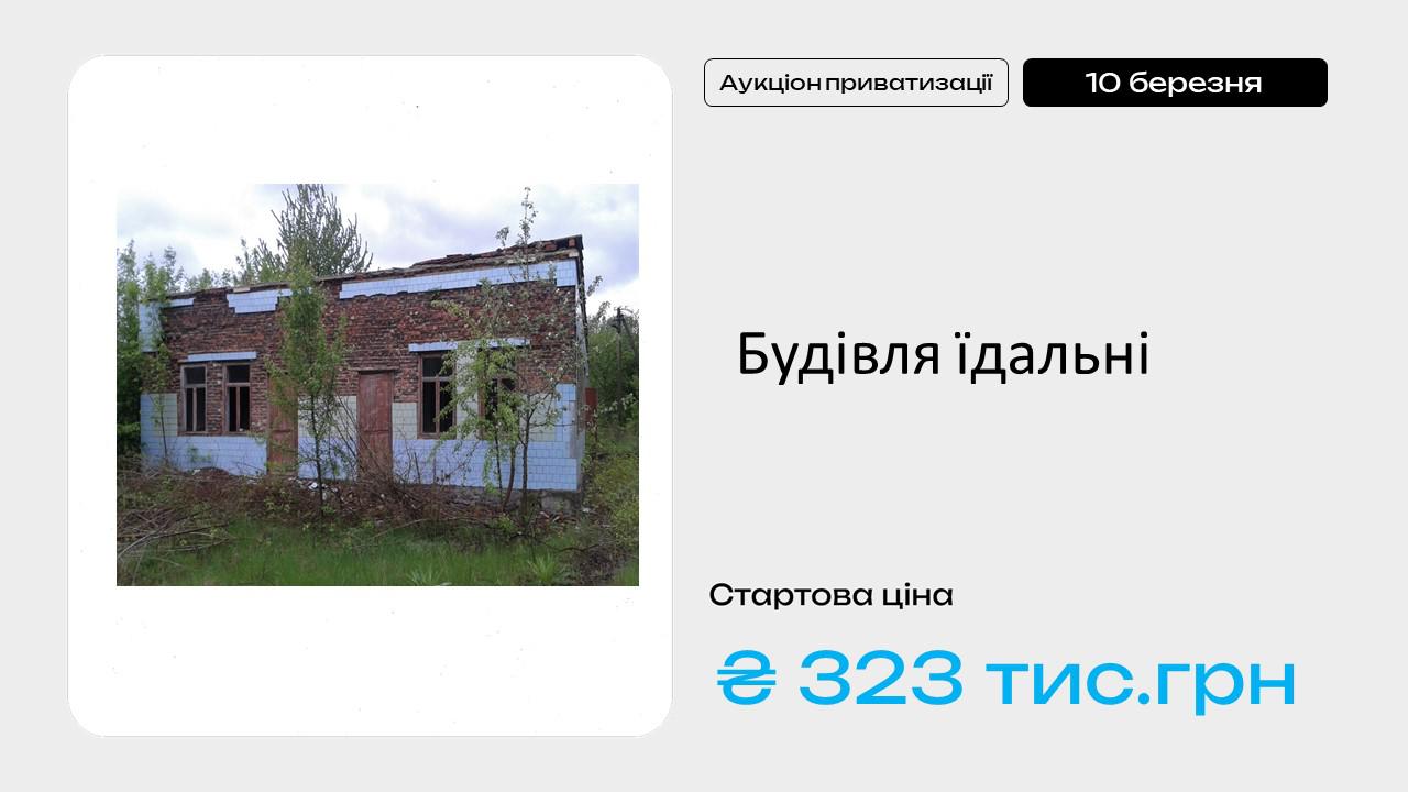 Інформація про продаж об’єкта малої приватизації – будівлі їдальні загальною площею 331,5 кв.м