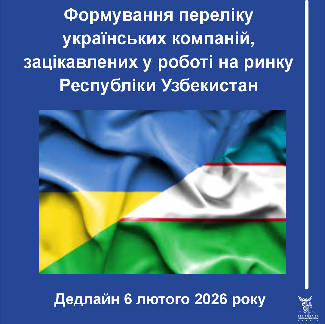 У межах робочої взаємодії з Посольством України в Республіці Узбекистан опрацьовується питання формування переліку українських компаній, зацікавлених у виході та роботі на ринку Республіки Узбекистан.