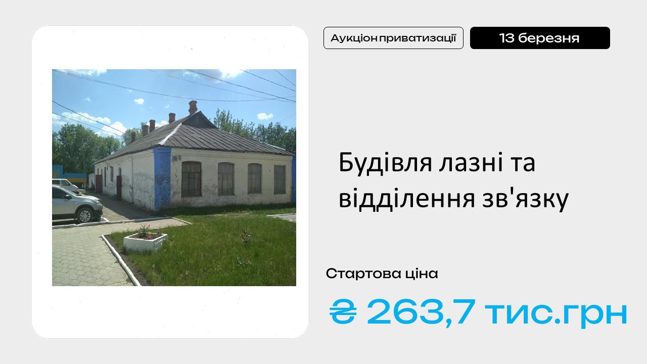 Інформація про продаж об’єкта малої приватизації – окремого майна – будівлі лазні та відділення зв’язку