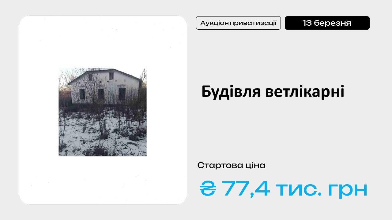 Інформація про продаж об’єкта малої приватизації – окремого майна – нежитлової будівлі державної дільниці ветеринарної медицини