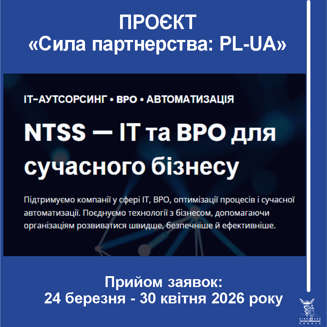 запрошуємо вашу компанію взяти участь у проекті «Сила партнерства: PL-UA», який реалізує польська компанія NT Solution Systems Sp. z o.o., що базується в Ольштинському науково-технологічному парку.